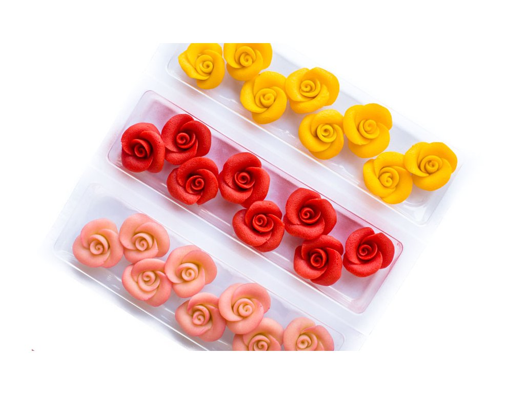 Červené marcipánové růže s 5 lístky, 8 ks