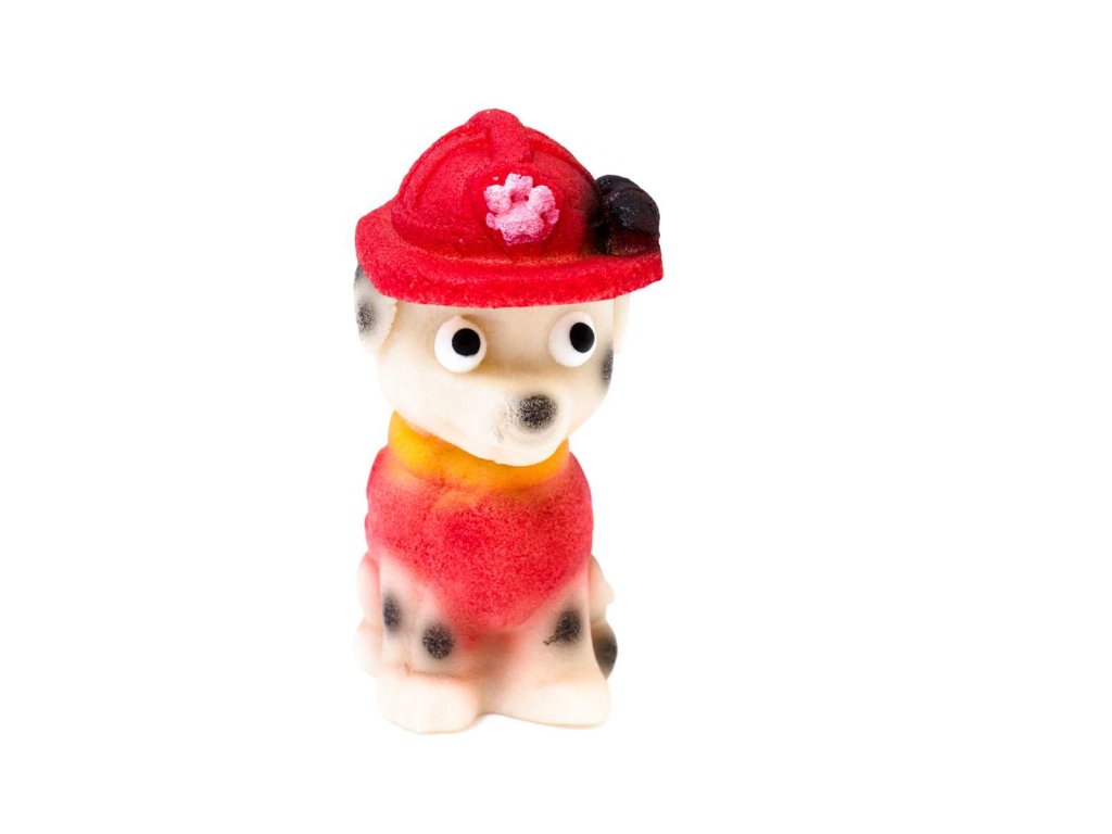 Červený marcipánový pes ze psí party
