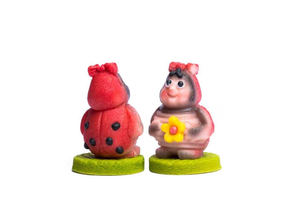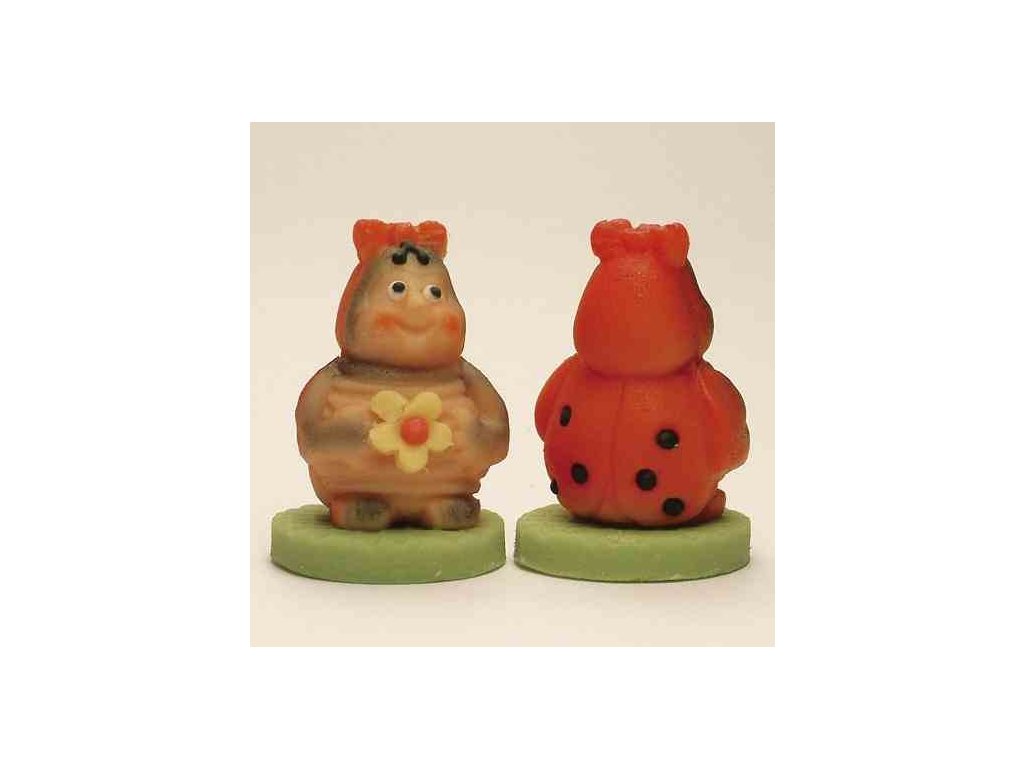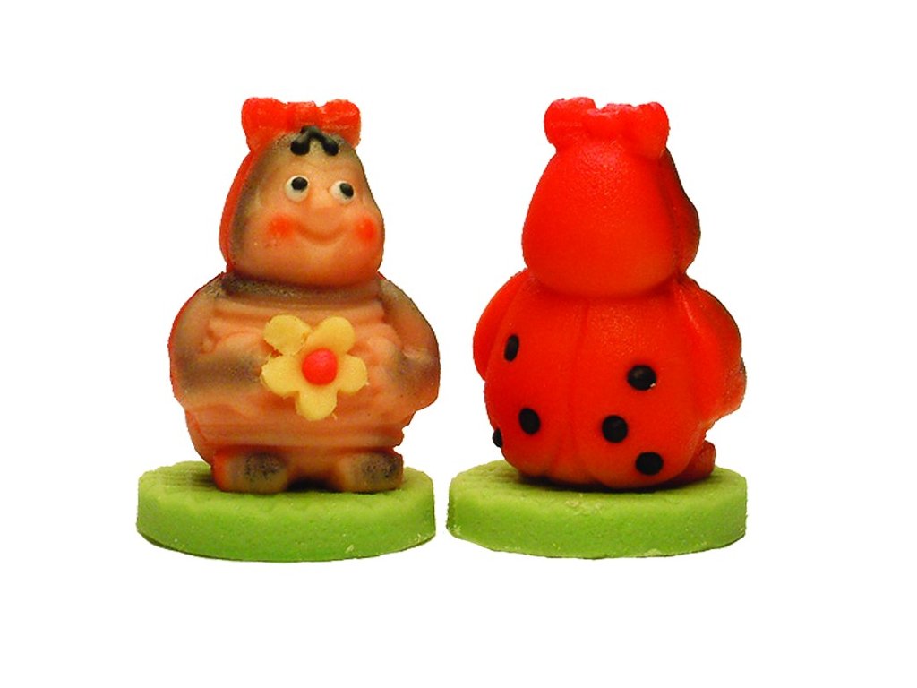 Složení: cukr, mandle (36%), voda, invertní cukrový sirup, udržovač vlhkosti (sorbit, invertáze), alkohol, vaječný bílek, potravinářské barvy: E120, E100, E131, E132, E153.