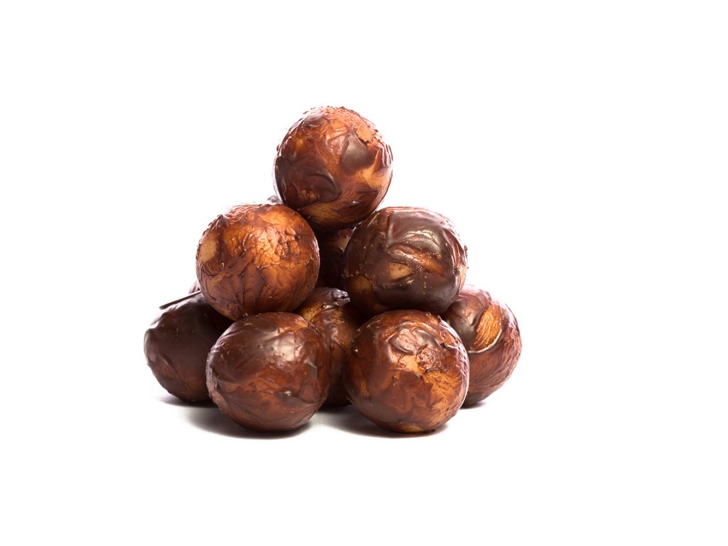 Složení: cukr, mandle (36%), voda, invertní cukrový sirup, udržovač vlhkosti (sorbit, invertáze), alkohol,čokoláda.