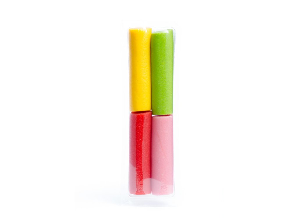 Složení: cukr, mandle (36%), voda, invertní cukrový sirup, udržovač vlhkosti (sorbit, invertáze), alkohol, potravinářské barvy: E120, E100, E131, E132.