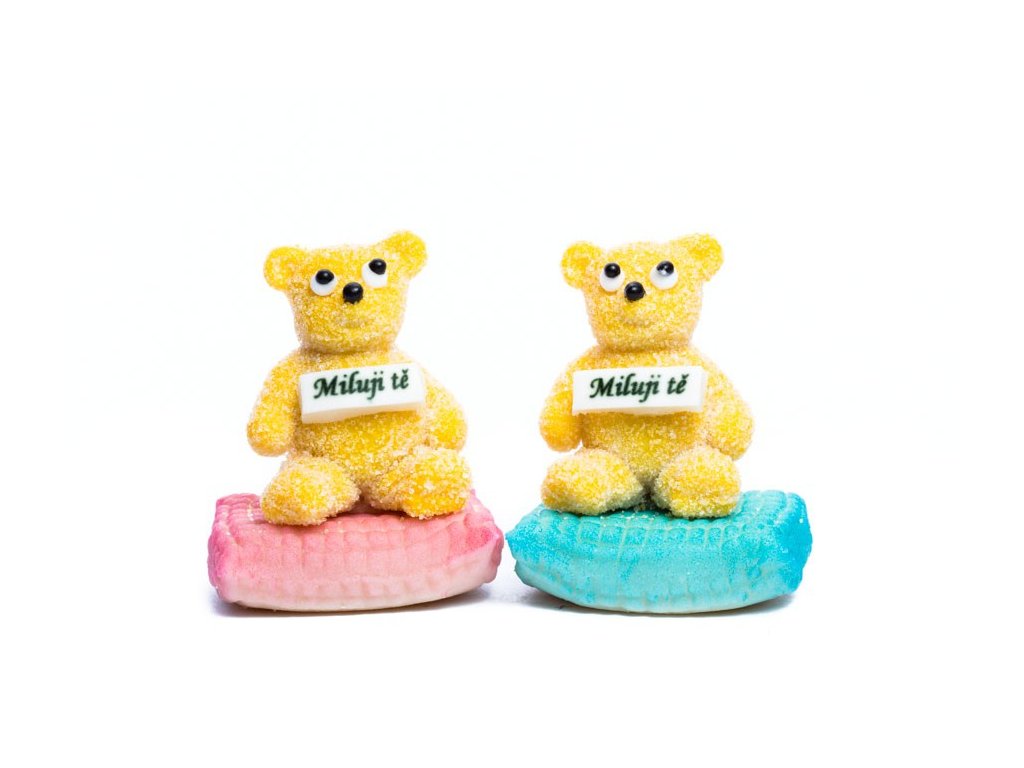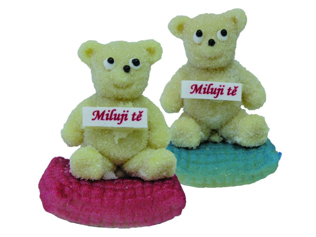 Vybírat můžete ze 2 barevných provedení: modrý marcipánový medvídek a červený marcipánový medvídek. Požadovanou barvu prosím uveďte při objednání do poznámky.