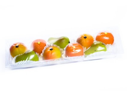 Prvotřídně vymodelované marcipánové ovoce už na vás čeká v této kategorii. Veškeré figurky ovoce jsou vytvořeny ručně z pravého marcipánu. Tedy z marcipánu, který splňuje předepsané množství obsahu mandlové hmoty. Ta je zárukou, že marcipánové ovoce bude nejen tvarově stálé, ale i lahodné. Ozdobte své dorty a cukrářské výrobky prvotřídními mandlovými ovocnými prvky. Dodáváme je hygienicky balené a s ochranou proti pomačkání. Objednejte nyní, obratem budeme expedovat.