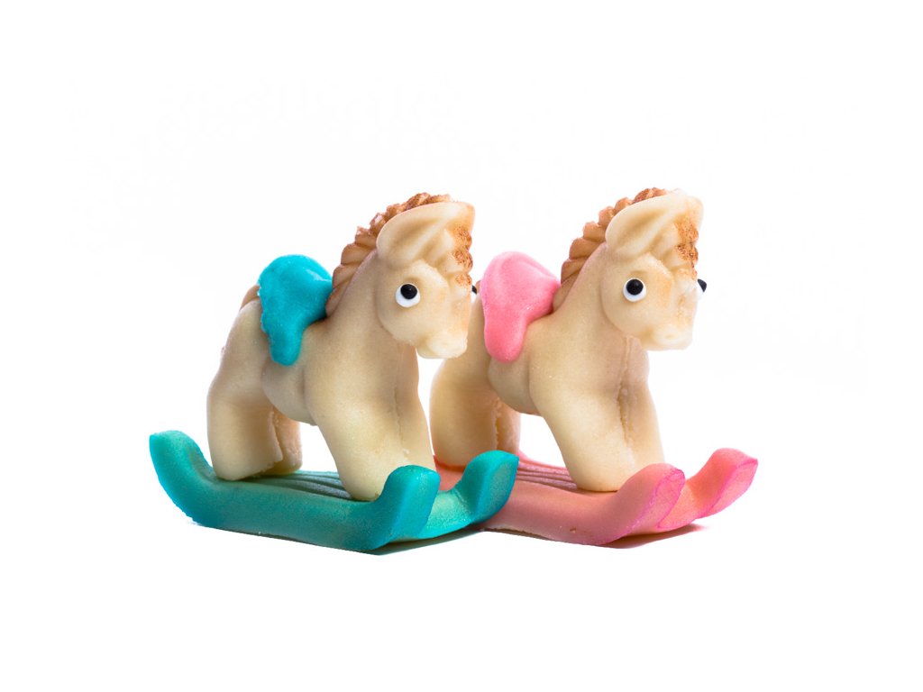 Růžový houpací koník z marcipánu