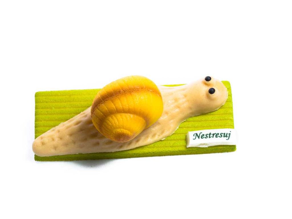 Složení: cukr, mandle (36%), voda, invertní cukrový sirup, udržovač vlhkosti (sorbit, invertáze), alkohol, vaječný bílek,potravinářské barvy: E120, E100, E131, E132, E153, karamelový sirup, E171 (seznam obsažených barev viz etiketa na jednotlivých výrobcích). Některé výrobky mohou obsahovat špejle nebo slánky. Některé výrobky mohou mít nejedlé dekorace: umělé květiny, papírové dekorace, kovové dekorace, voskové dekorace.