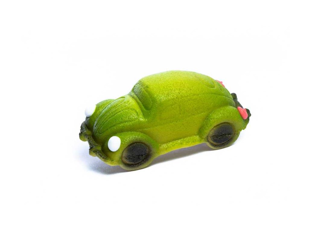 Zelené auto „Brouk“ z marcipánu