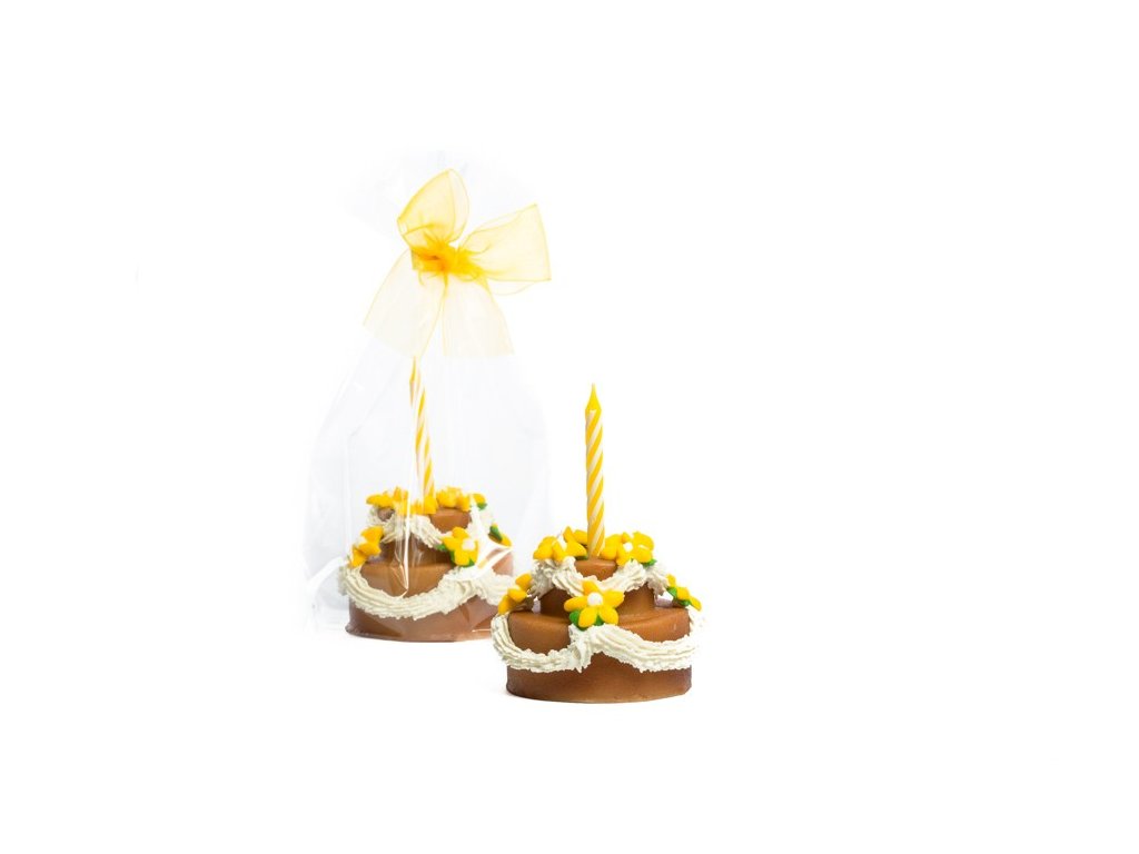 Hnědý dort se svíčkou z marcipánu